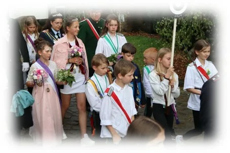 Alle Kinder können mitmachen! Holzgewehre für die Jungen und Blumenbögen für die Mädchen sind vorhanden und werden vor dem Abmarsch vom Gasthaus am Bahnhof ausgegeben. Der Ausmarsch führt zur Abholung des Kindermajestätenpaares und anschließend zum Burgplatz.